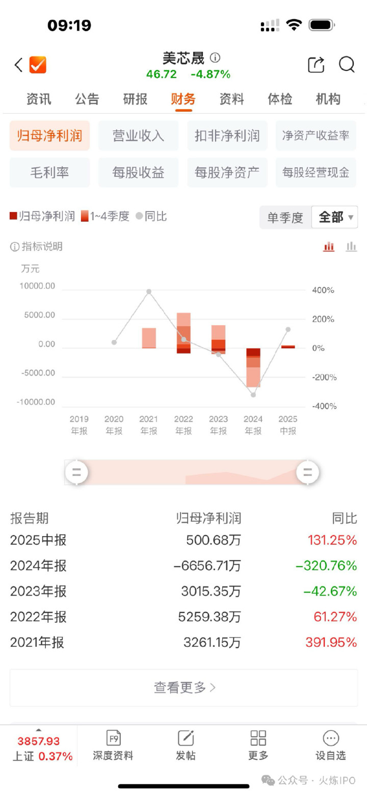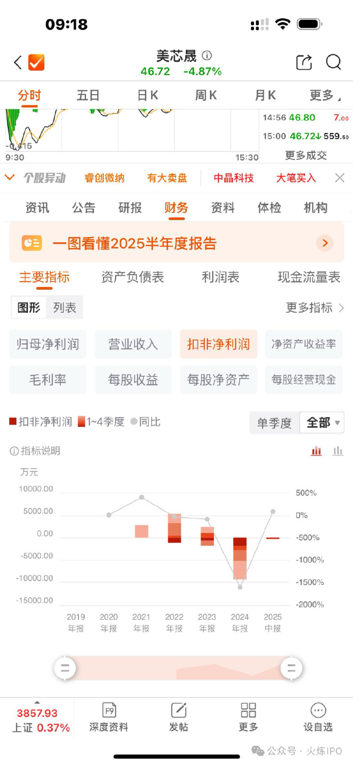 美鑫晟2025年中报终于扭亏为盈, 但扣非净利润仍然为负! 请看AI分析.